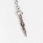 Elevate your gothic fashion collection with the Ghoulish Soirèe Punk Brooch. This striking accessory features a unique design of stacked skulls, perfectly embodying the rebellious spirit of punk culture. Adorned with dangling coffin and knife pendants, this brooch is not just a piece of jewelry; it's a statement of individuality and dark elegance.