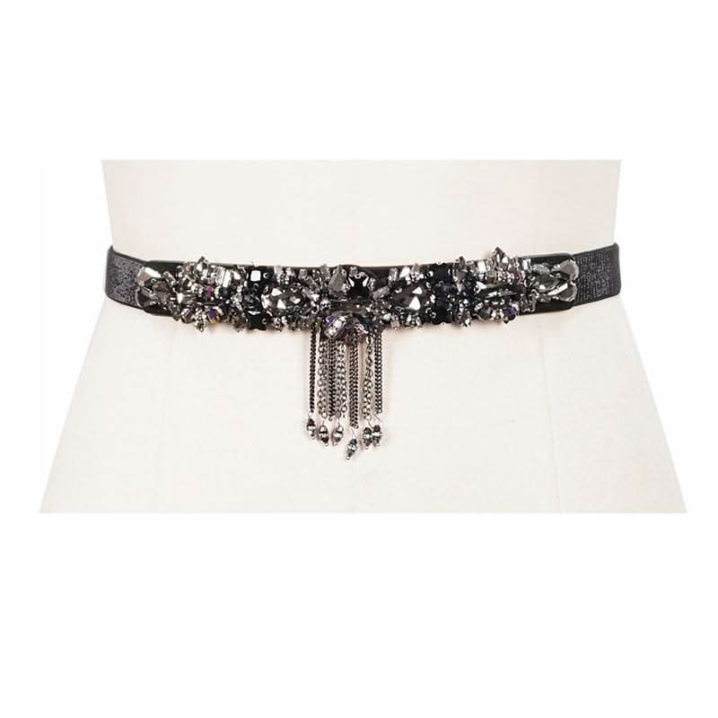 Adorn your waist with dark elegance, where hand-sewn glass beads and studs weave a tapestry of rebellion and allure for every daring outfit.