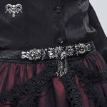 With snap buttons at the back, this belt ensures a secure fit while allowing for easy wear. The combination of glass and bead embellishments creates a captivating visual appeal, perfect for layering over flowing dresses or pairing with your favorite gothic ensemble. Whether you're attending a concert, a night out, or simply expressing your individuality, the Neoplasm dress belt is the ideal accessory to showcase your unique style.