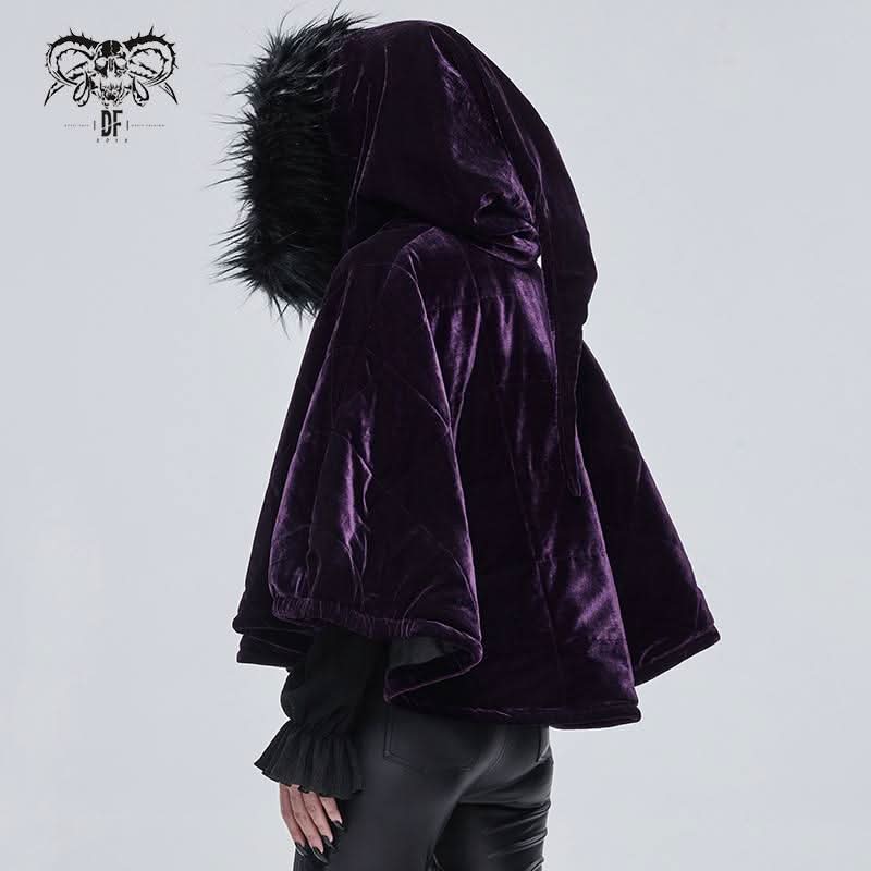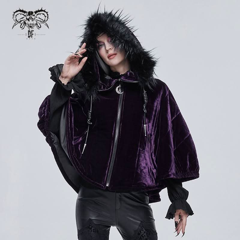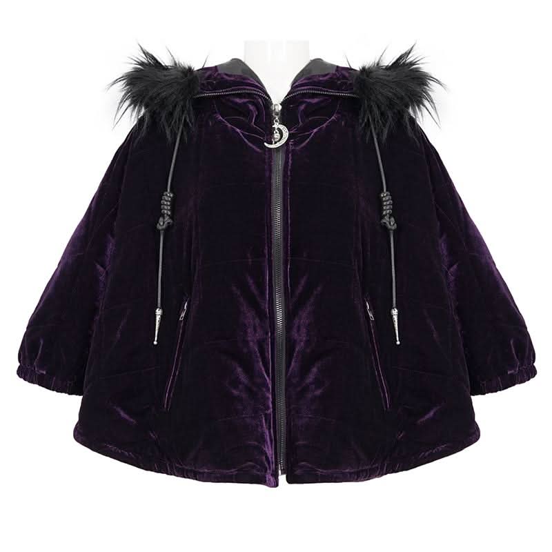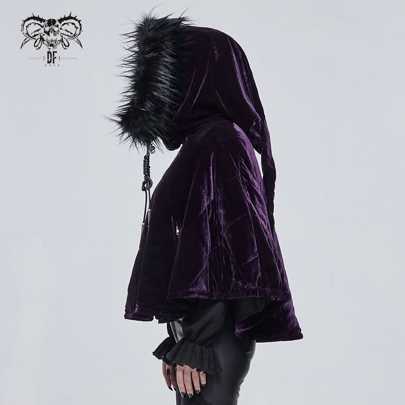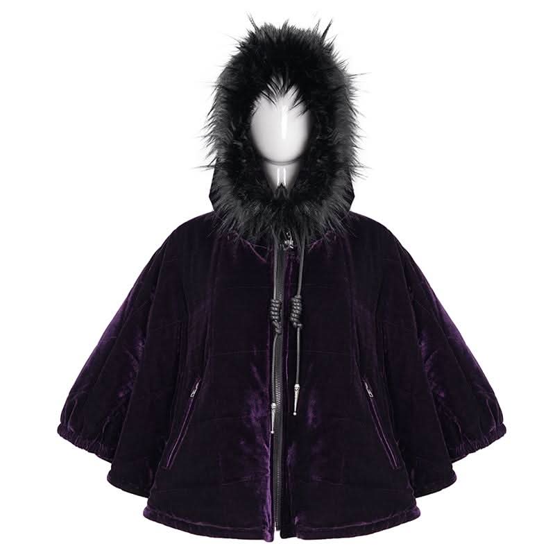 Embrace the allure of the night with our Sweet Oblivion Gothic Cape, featuring a luxurious fur lined hood that adds a touch of elegance to your gothic wardrobe. This stunning purple cape is designed for those who dare to stand out, making it the perfect statement piece for any occasion.