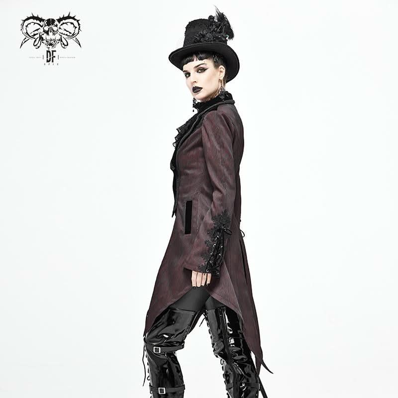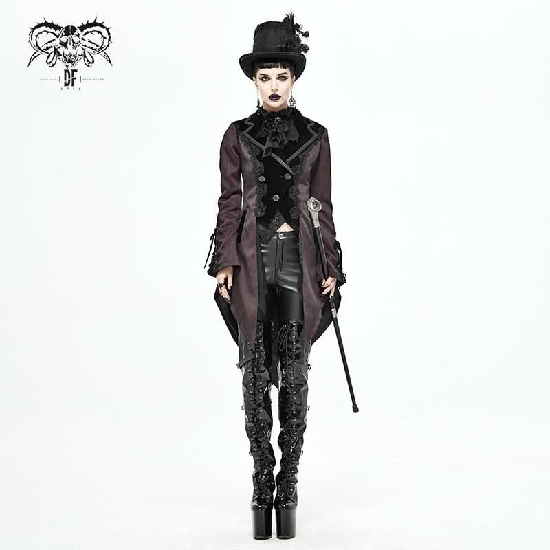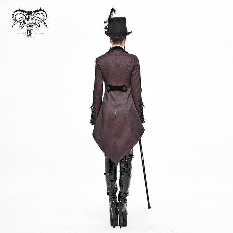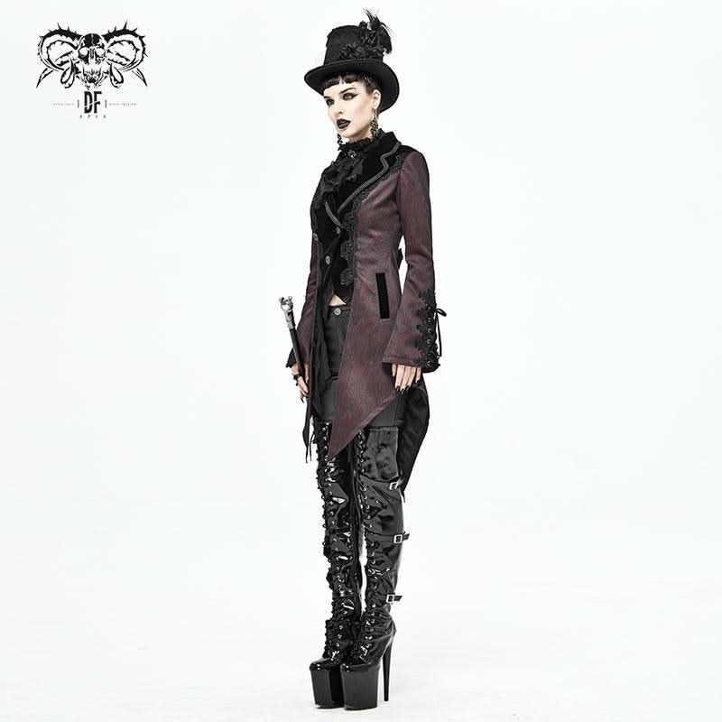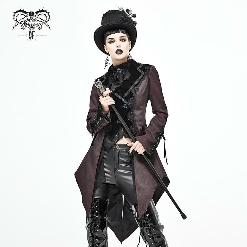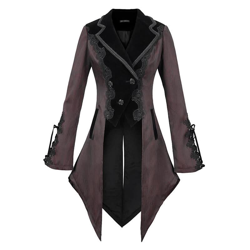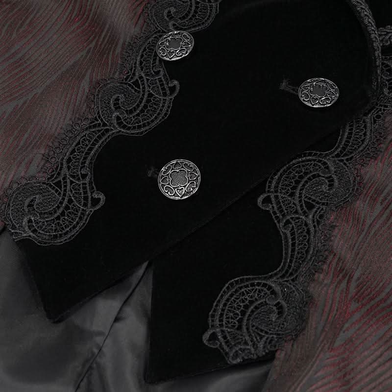The unique lace-up design and luxurious velvet panel create a striking contrast, ensuring you stand out in any crowd. Additionally, the decorative metal buckle on the back adds an edgy flair, enhancing the overall gothic vibe of this dinner jacket. Whether you're attending a gothic-themed event or simply want to express your unique style, this jacket is the ideal choice.