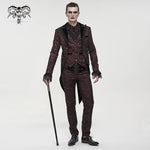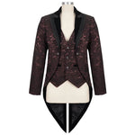 Dream Snatcher Gothic Patterned Swallowtail Coat in Crimson