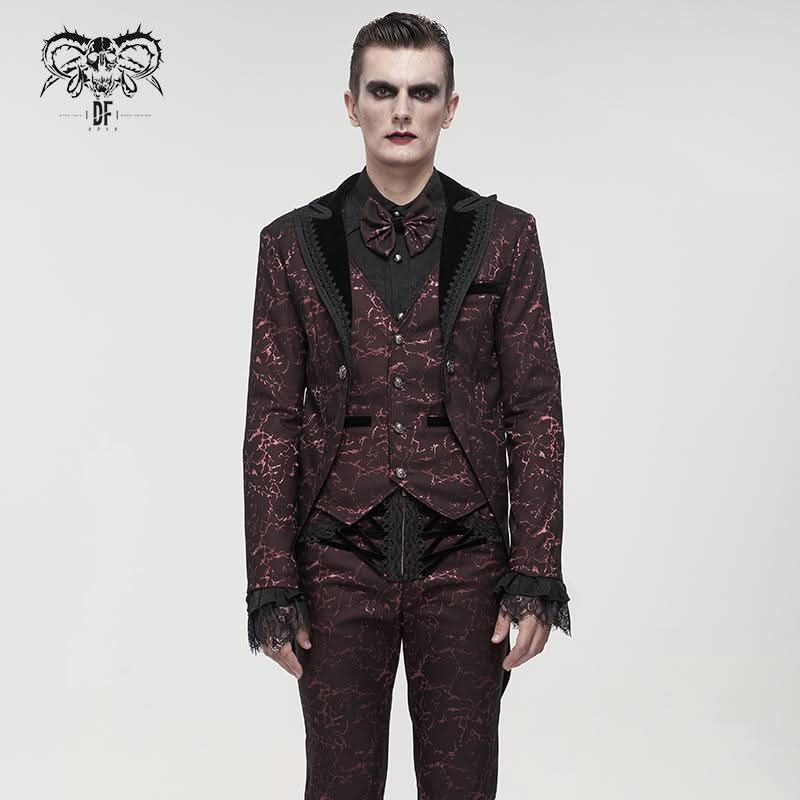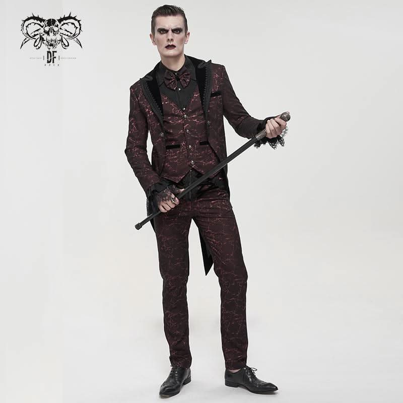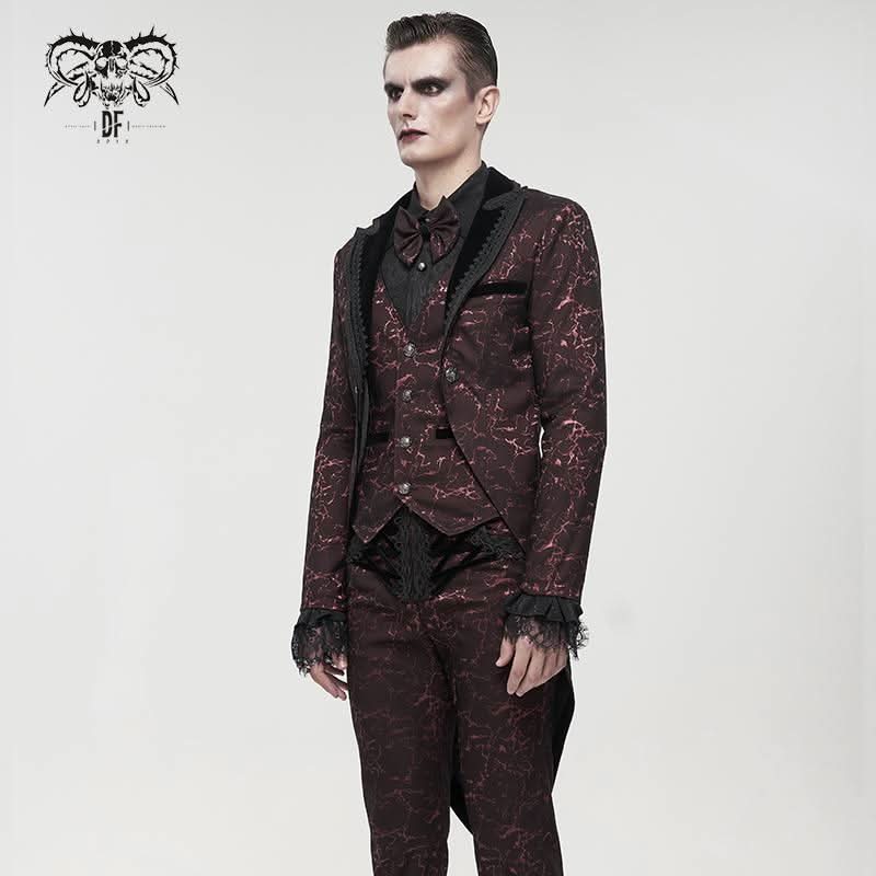 'Dream Snatcher' Gothic Patterned Swallowtail Coat (Crimson)