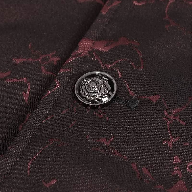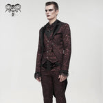 Step into the realm of dark elegance with the Dream Snatcher Gothic Patterned Swallowtail Coat in a striking crimson hue. This exquisite coat is designed for those who embrace the gothic aesthetic, featuring a beautifully intricate pattern that captures the essence of gothic fashion. The swallowtail cut adds a dramatic flair, making it a standout piece for any wardrobe.