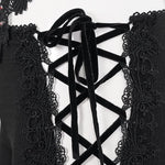 Step into the realm of dark elegance with our Buttercup Gothic Leggings. Designed for those who embrace the gothic aesthetic, these leggings are a perfect blend of style and comfort. The intricate slits adorned with crossed ribbons and delicate lace appliques create a striking visual that sets you apart from the crowd. Whether you're dressing up for a night out or adding a touch of edge to your everyday look, these leggings are a must-have in your gothic wardrobe.