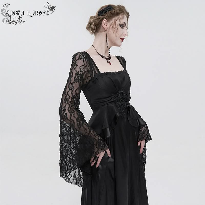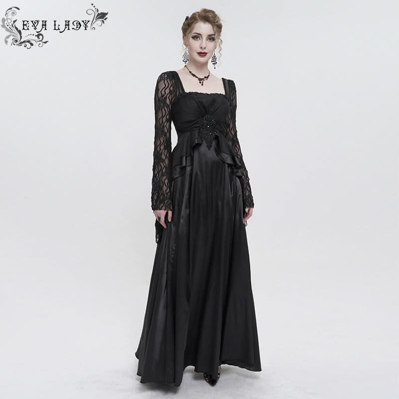 Embrace your dark elegance with the Queen of Nile Gothic Satin Lace Dress. This stunning black dress is the epitome of gothic fashion, combining luxurious satin and intricate lace to create a mesmerizing silhouette. The floor-length hemline flows gracefully, making it perfect for any enchanting evening or special occasion.
