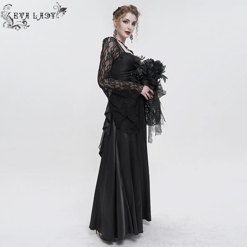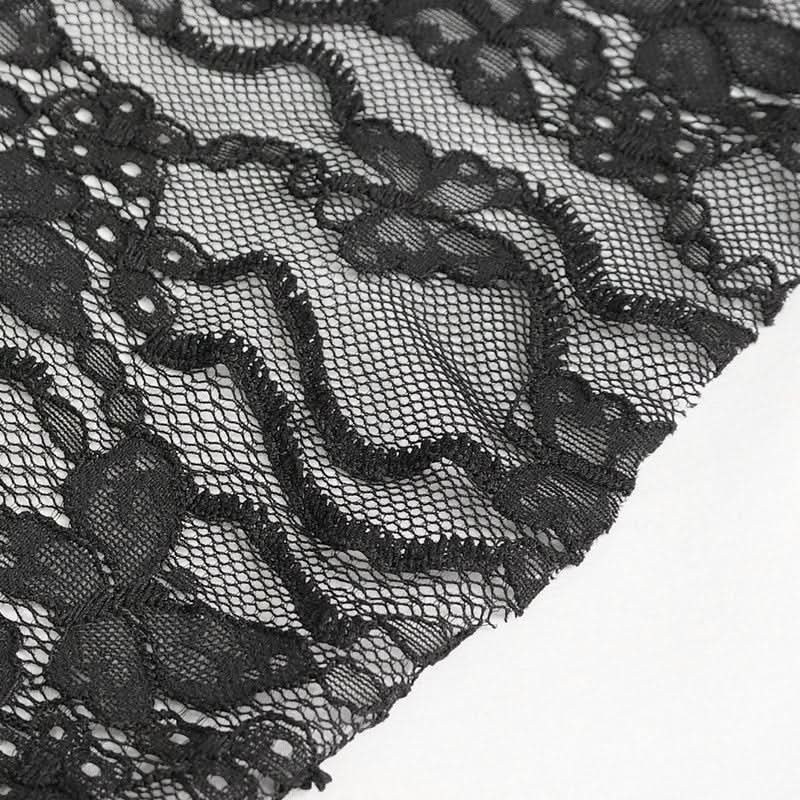 Drape yourself in dark elegance and let the intricate lace whisper secrets of allure and sophistication with every step.