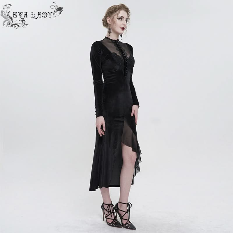 Embrace your dark elegance with the stunning Yggdrasil Gothic Paisley Lace Dress. This exquisite dress combines intricate paisley patterns with delicate lace, creating a captivating look that is perfect for any gothic fashionista. The high-low hemline adds a dramatic flair, while the high mesh neckline enhances the ethereal quality of the design.