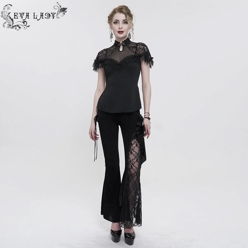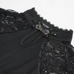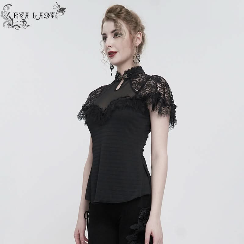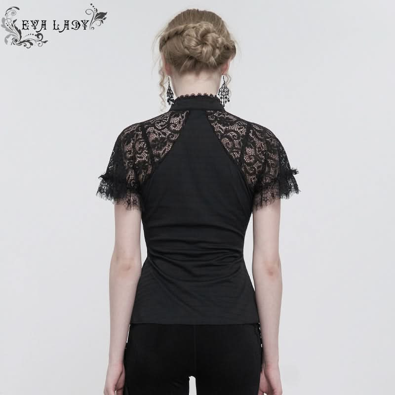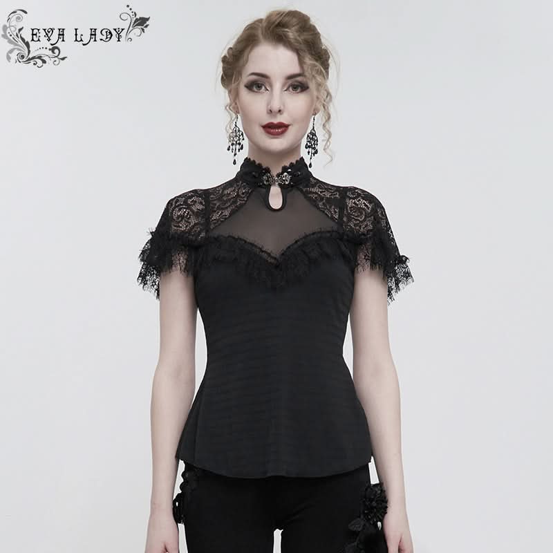 Designed with short sleeves, this gothic top features exquisite lace detailing along the sleeves and neckline, creating a captivating contrast that enhances its overall allure. A delicate hook closure at the neckline adds a touch of sophistication, ensuring you stand out at any event.