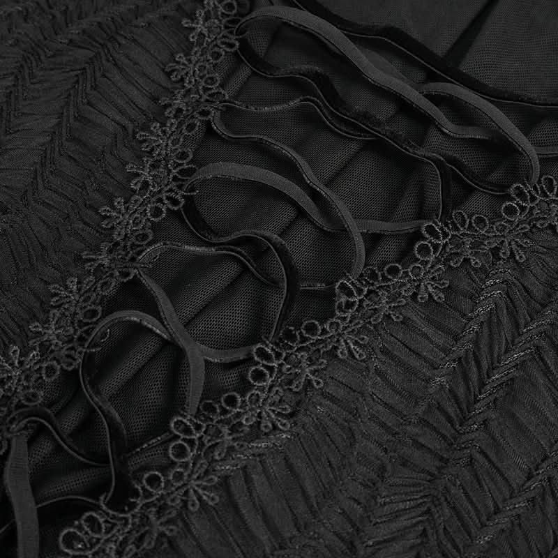 Embrace your dark side with the stunning ‘Rosalie' Gothic Ruched Sleeves Top. This exquisite piece is designed for those who appreciate the beauty of gothic fashion, featuring elegant ruched sleeves that add a touch of drama to your outfit. The high neckline is adorned with delicate beadwork, creating a captivating focal point that enhances the overall allure of the top.