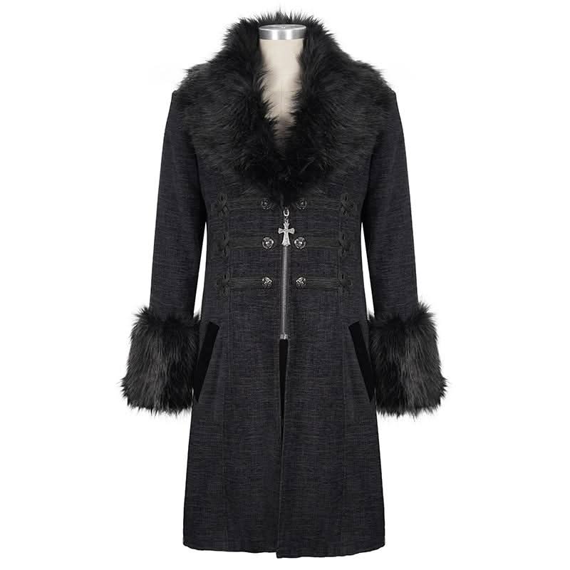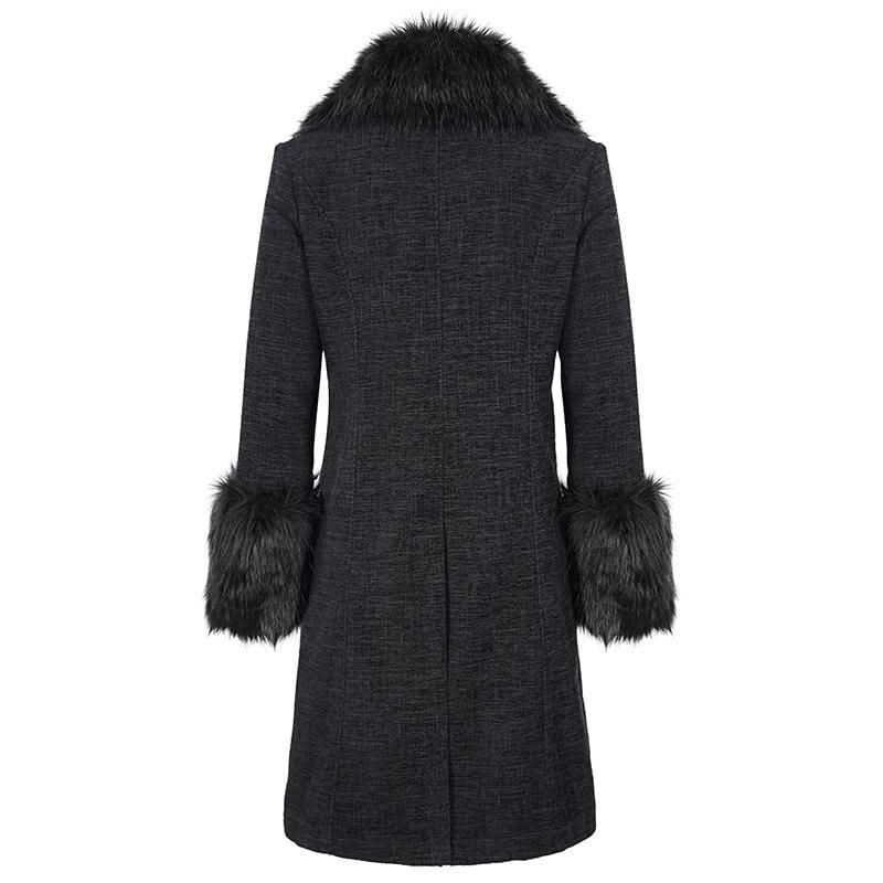Crafted with attention to detail, this gothic fur collar coat is not just a piece of clothing; it's a statement of individuality and style. Whether you're attending a dark-themed event or simply want to express your unique fashion sense, this coat is the ultimate choice for any gothic enthusiast.