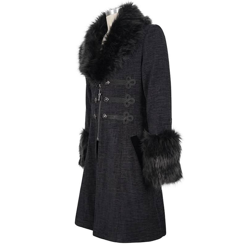 I was pleasantly surprised by how comfortable this coat is for daily wear; the soft fur collar feels great against the skin and the fit allows for easy movement, making it perfect for both casual outings and more formal gothic events.