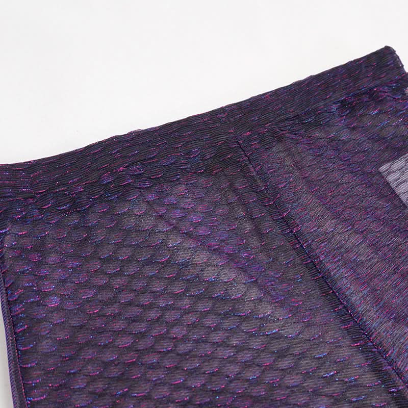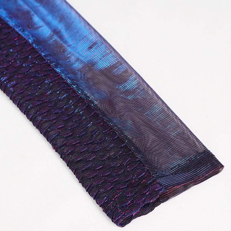 Step into the spotlight with our stunning Falling Night Punk Iridescent Mesh Leggings. These leggings are a perfect blend of edgy punk style and mesmerizing iridescence, designed for those who dare to stand out. The translucent mesh fabric shimmers with every movement, creating a captivating visual effect that is sure to turn heads.