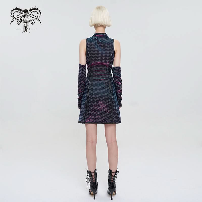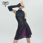Step into the spotlight with our stunning Punk Cheongsam Dress in a captivating lilac hue. This unique dress blends traditional cheongsam elements with a rebellious punk twist, making it a must-have for any gothic fashion enthusiast. The high neckline and iridescent fabric create a striking silhouette that is sure to turn heads at any event.
