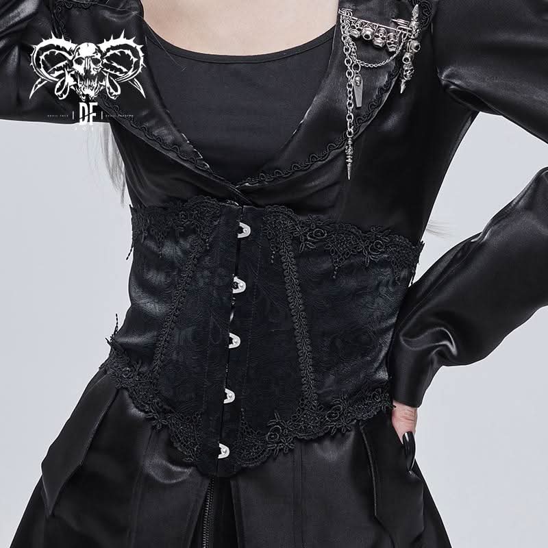 The corset is designed with convenience in mind, featuring hooks at the center-front for easy wear. Additionally, the adjustable ribbon at the back allows you to customize the look to your preference, ensuring you feel confident and empowered. Whether you're dressing up for a night out or adding flair to your everyday attire, this gothic corset is versatile enough to suit any occasion.