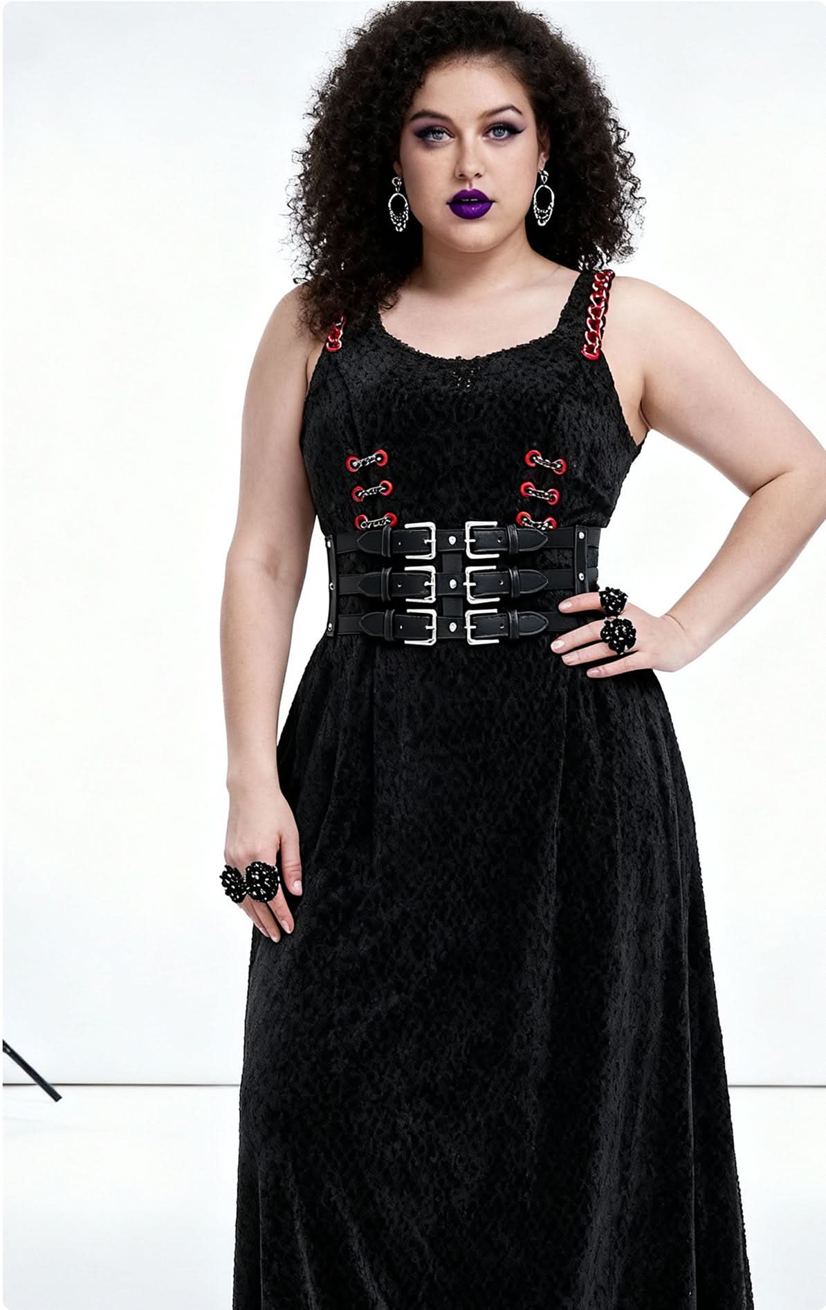 Embrace the dark allure of rebellion with the 'Demian' Girdle, where edgy buckle details meet comfort and versatility for your boldest gothic statements.
