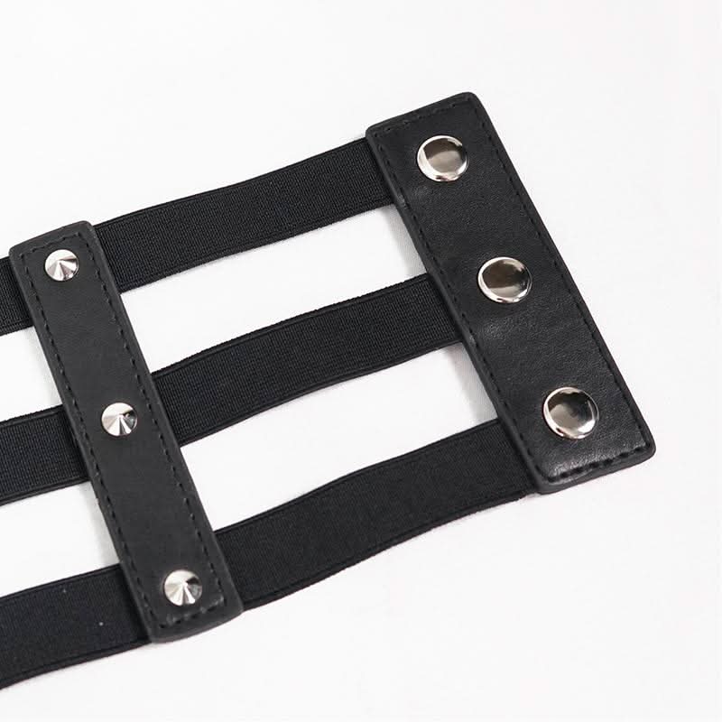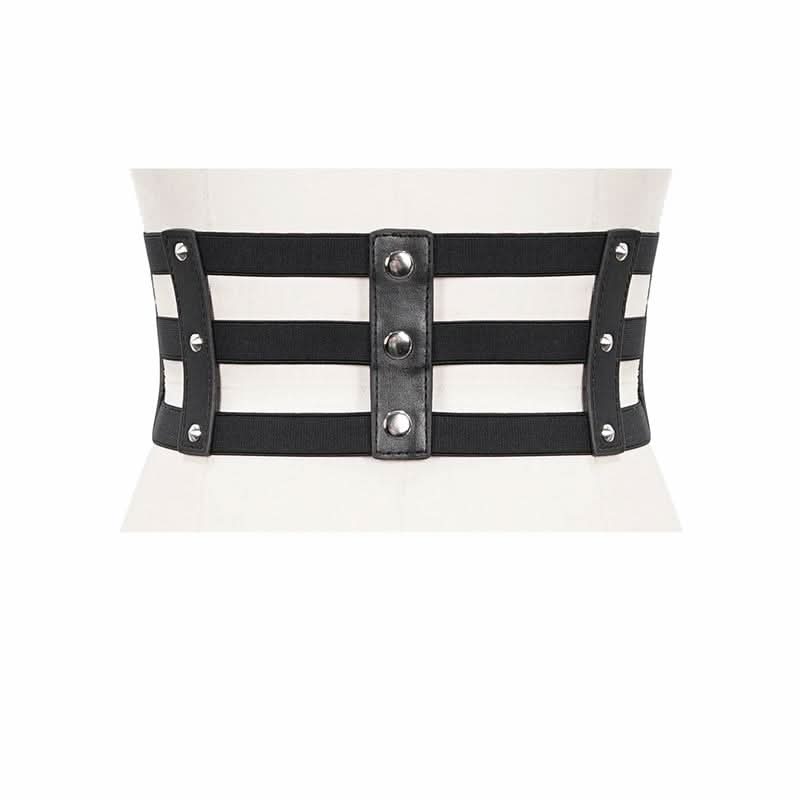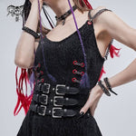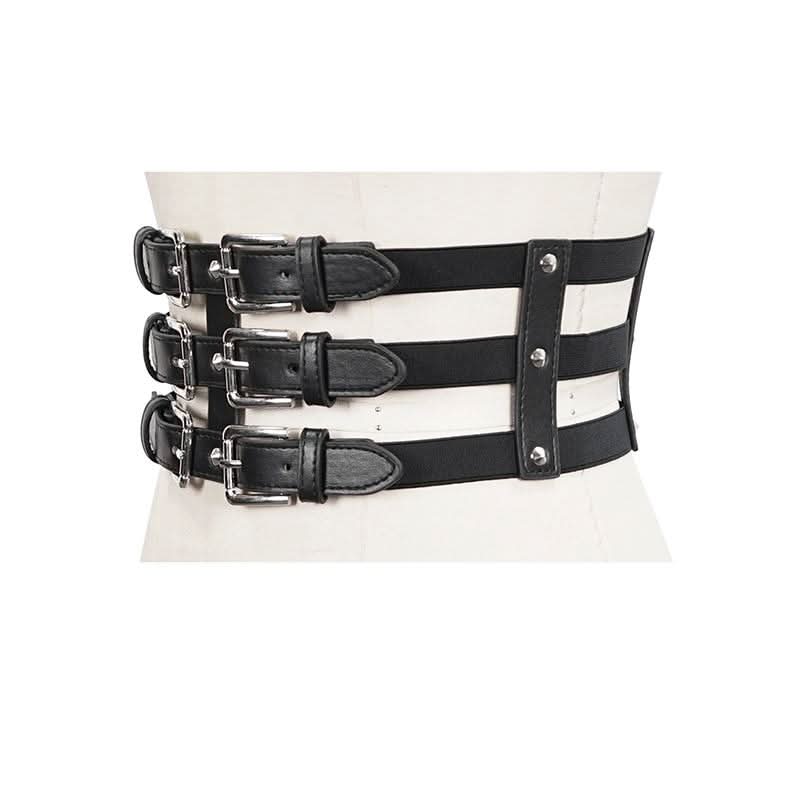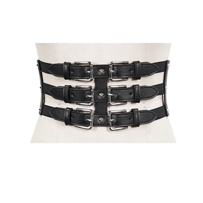 Designed for versatility, the 'Demian' Punk Buckle Girdle can be paired with a variety of looks, from layered gothic ensembles to casual streetwear. The snap buttons on the back provide ease of use, allowing you to adjust the girdle to your preference effortlessly. Whether you're heading to a concert, a night out, or simply want to express your unique style, this girdle is the perfect addition to your wardrobe.