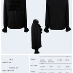 Crafted for those who appreciate the finer details, the Iago shirt flows gracefully, allowing for effortless movement while maintaining an air of sophistication. Whether you're dressing for a special occasion or simply want to elevate your everyday wardrobe, this gothic chiffon shirt is a versatile addition. Pair it with your favorite skirts or tailored trousers to create a striking outfit that embodies the essence of gothic elegance.