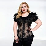 Gothic Adjustable Steel Buckles Fishbone Transparent Lace Corset With Feather Flowers