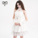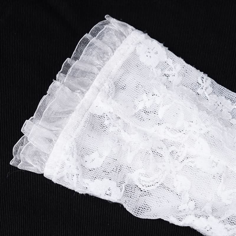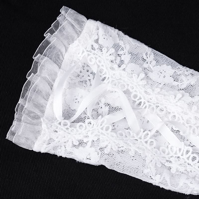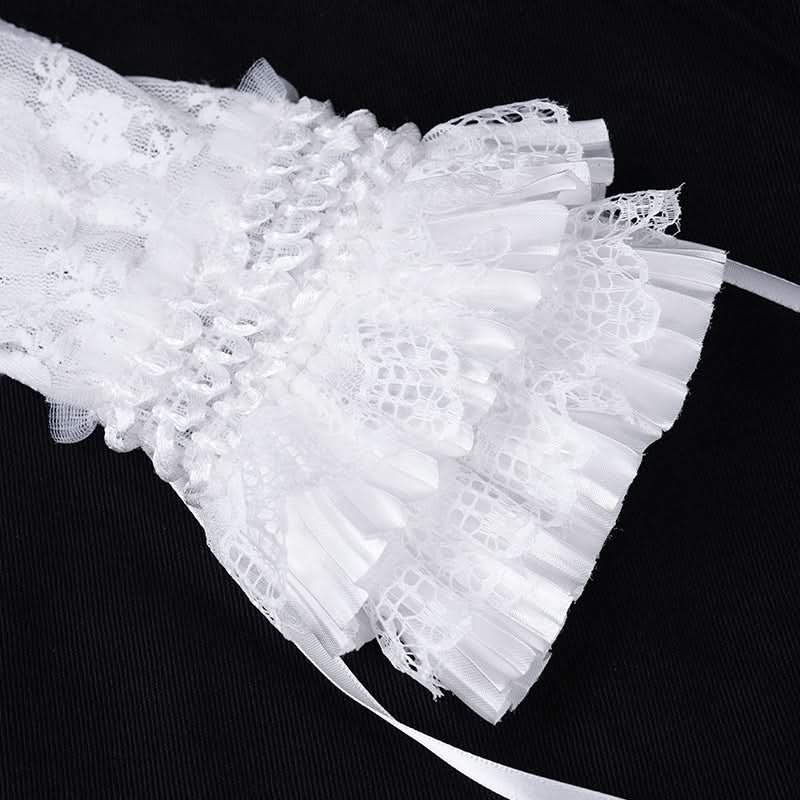The White Thorn Rose Ribbons Gloves blend delicate Lolita elegance with a shadow-kissed edge, featuring soft mid-length ribbons and embroidered rose motifs that feel like poetry whispered in a gothic garden at dusk.