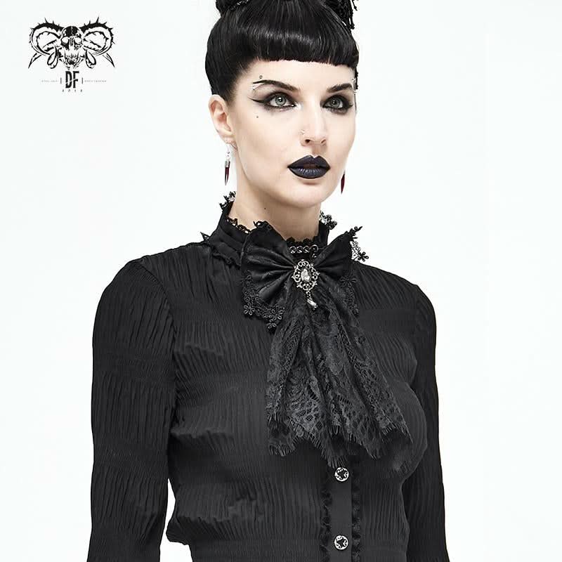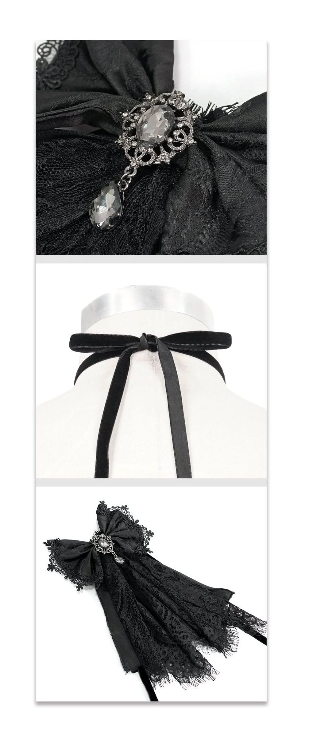 What sets this gothic bow tie apart is its embellishment—a striking silver brooch adorned with a glass diamond, adding a touch of sophistication to your look. Whether you're dressing up for a special occasion or simply want to enhance your everyday style, this bow tie is versatile enough to suit any gothic outfit. Plus, its adjustable feature allows you to customize it to your preference, ensuring you achieve the perfect look every time.