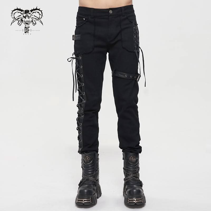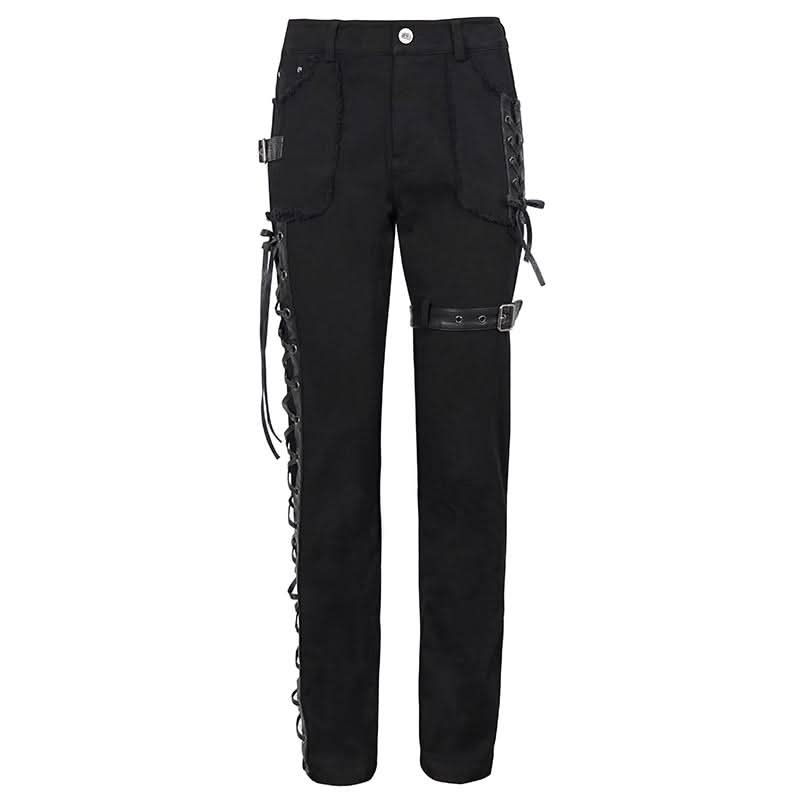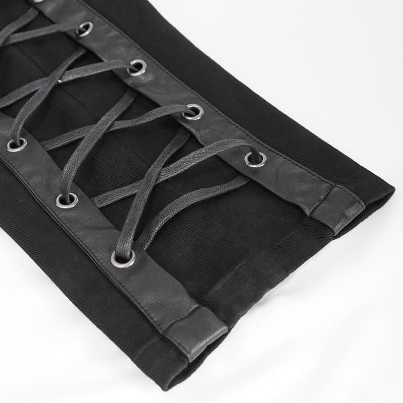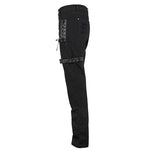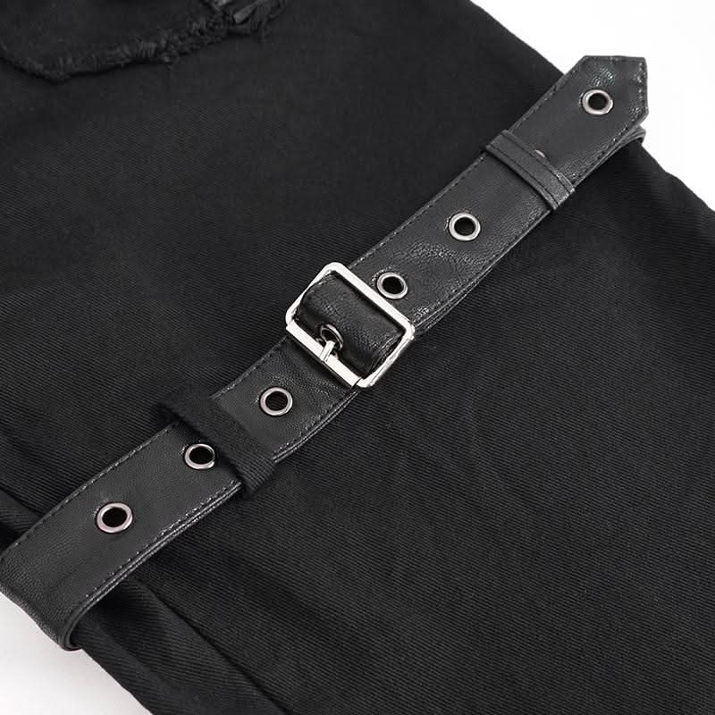 The leather straps with buckles on both sides not only enhance the aesthetic but also provide a unique touch that complements your bold wardrobe. With a convenient zip fly closure, these trousers are designed for both style and functionality, ensuring you can easily slip them on for any occasion. Whether you're heading to a concert or a night out with friends, these trousers will elevate your gothic ensemble.