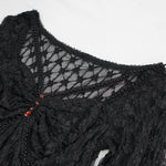 Embrace your dark side with the Tongue In Cheek Gothic Mesh Printed Top. This stunning piece combines the allure of gothic fashion with modern design elements, making it a must-have for any wardrobe. Crafted from a unique printed mesh fabric, this top showcases intricate lace and bead appliqué detailing at the neckline, adding a touch of elegance to your gothic ensemble.