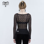 Elevate your gothic fashion game with this eye-catching top that speaks to your unique aesthetic. Make a statement and let your style shine with the Tongue In Cheek Gothic Mesh Printed Top.