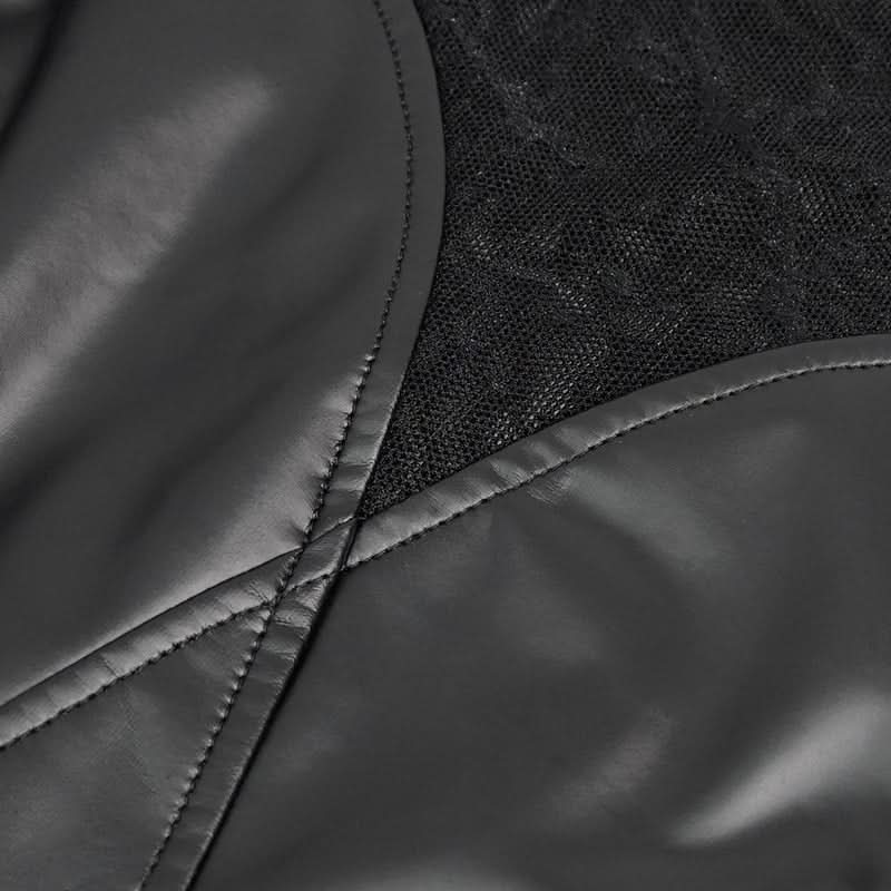 Defy convention with a daring fusion of punk edge and ethereal allure, where faux leather meets breathable mesh for an irresistible statement in rebellion.