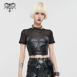 Mistress Of Hell Punk Mesh And Leather Spliced Crop Top