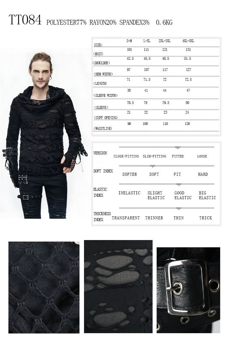 The unique design features leather loops stitched at the cuffs, adding a striking detail that pairs beautifully with mesh gloves or other accessories. This punk top is not just a fashion statement; it's a versatile piece that can be layered or worn on its own, making it suitable for various occasions, from concerts to casual outings. With its stretchy fabric, it provides comfort while maintaining a bold aesthetic, ensuring you feel as fierce as you look.