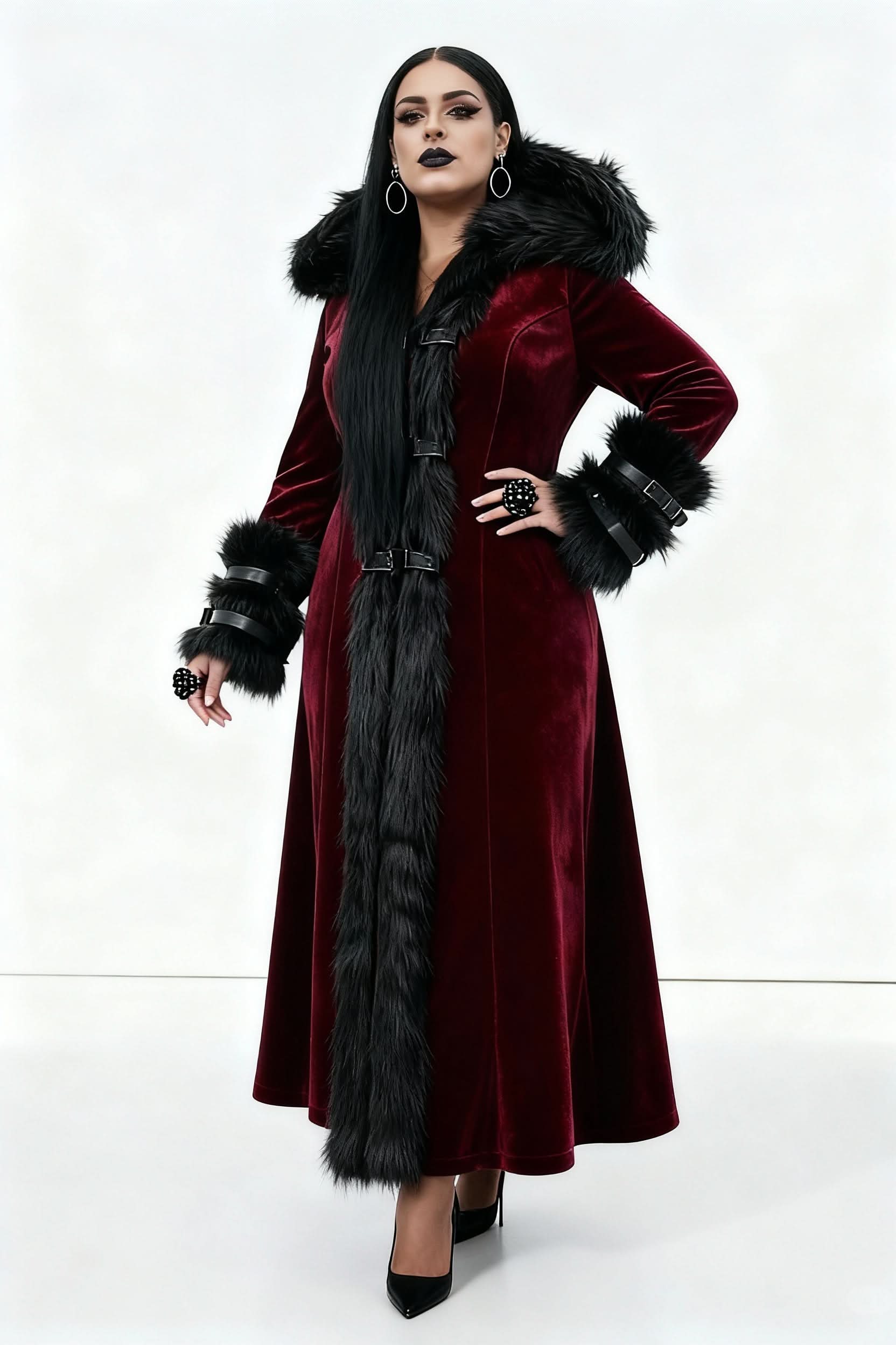 Step into the shadows with our stunning Demonic Priestess Long Coat, a must-have for any gothic fashion enthusiast. This exquisite long coat features a luxurious faux-fur trim on the hood, collar, and cuffs, adding an air of mystery and elegance to your ensemble. Perfect for layering over your favorite gothic attire, this coat is designed to keep you warm while making a bold statement.