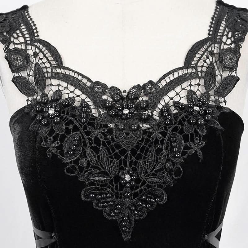 Step into the shadows with our Manifestation Gothic Dress, a stunning piece that embodies the essence of gothic fashion. This enchanting dress features a unique distressed hemline that adds an edgy flair, making it perfect for those who dare to stand out. Crafted with intricate lace detailing along the neckline, this dress is further enhanced with delicate bead embellishments that catch the light beautifully.