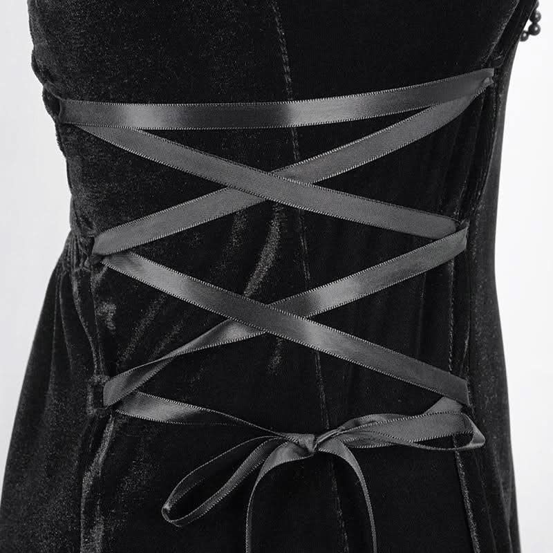 The corset-inspired back design not only adds a touch of elegance but also allows for a customizable look, ensuring you can express your individuality. Whether you're attending a gothic-themed event, a night out with friends, or simply want to elevate your everyday style, this dress is a versatile addition to your wardrobe.