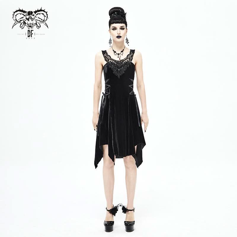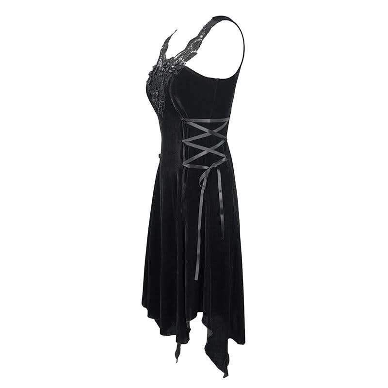 Dare to enchant in a dress that marries edgy allure with gothic elegance, featuring a distressed hemline that whispers rebellion in every step.
