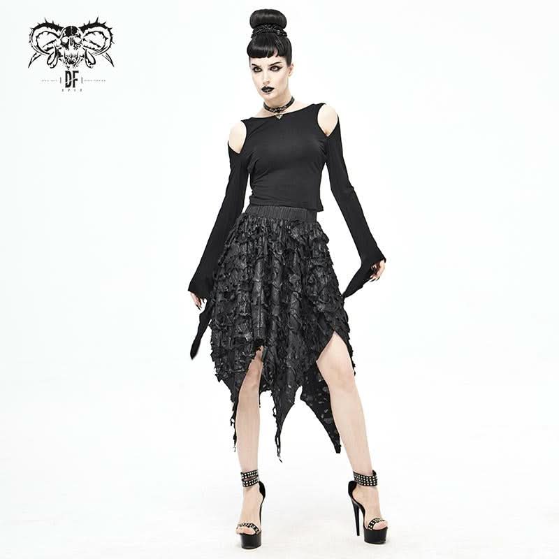 Embrace your dark side with our stunning Barbed Wire Gothic Skirt, designed for those who love to express their unique style. This gothic skirt features a striking distressed hemline that adds an edgy flair to any outfit. Perfect for layering or wearing solo, it effortlessly combines comfort and style, making it a must-have for your gothic wardrobe.
