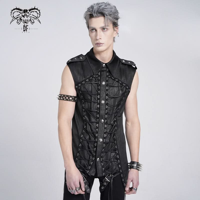 The Serpentstrike Shirt features bold snake-print faux leather with a rugged woven texture and a structured silhouette. Designed for punk and alternative wardrobes, it delivers gritty attitude with sleek dark flair.