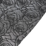 Its strapless silhouette and sculpted cutouts trace a blooming rose motif in deep obsidian, conjuring images of midnight rose gardens and moonlit verses.