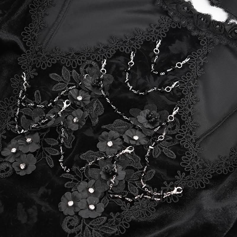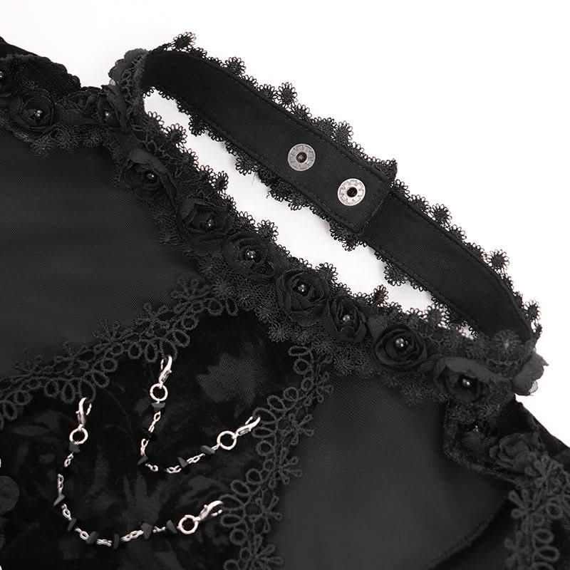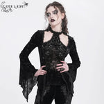 The Midnight Reverie Halter Tee pairs luminous black velvet with a bold halterneck silhouette and long sleeves, creating a poetic blend of gothic romance and avant-guard edge. Its sleek shimmer and sculpted lines evoke the nocturnal drama of urban myth and moonlit stage presence, perfect for alt streetwear, visual-kei styling, or night-drenched looks.