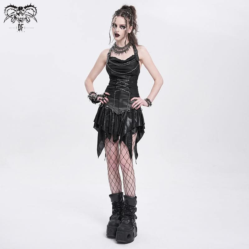 The Riot Seraph Chain Tee fuses punk grit with angelic subversion a sleeveless halter silhouette accented by a bold chain detail that sings of underground stages, graffiti ruins, and neon‑washed backstreets.