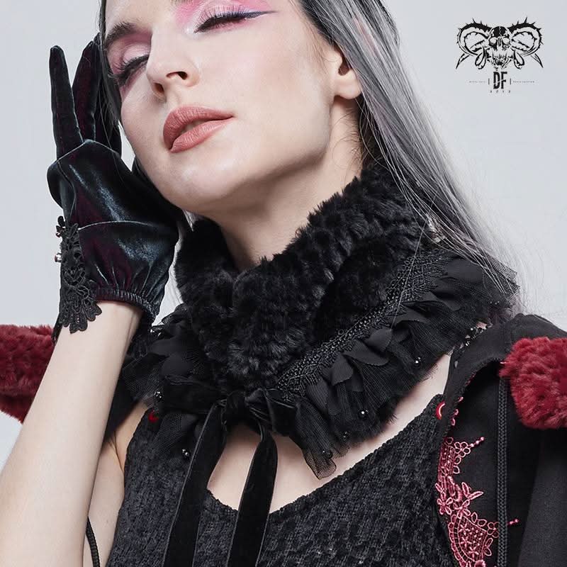 Embrace dark elegance with the Callista neckerchief, a versatile accessory that transforms your look from subtle to striking with a touch of lace and mystery.