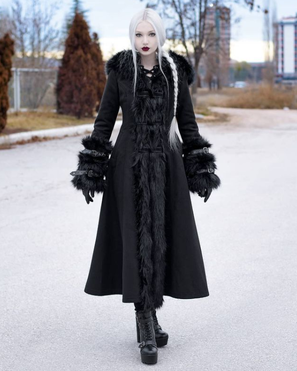 Step into the realm of elegance and dark allure with the Baroness Gothic Long Coat, a stunning addition to your gothic fashion collection. This long coat features a luxurious faux fur collar and sleeves, offering a sophisticated touch while ensuring a cruelty-free choice. Perfect for those chilly evenings, this coat not only keeps you warm but also elevates your style to new heights.