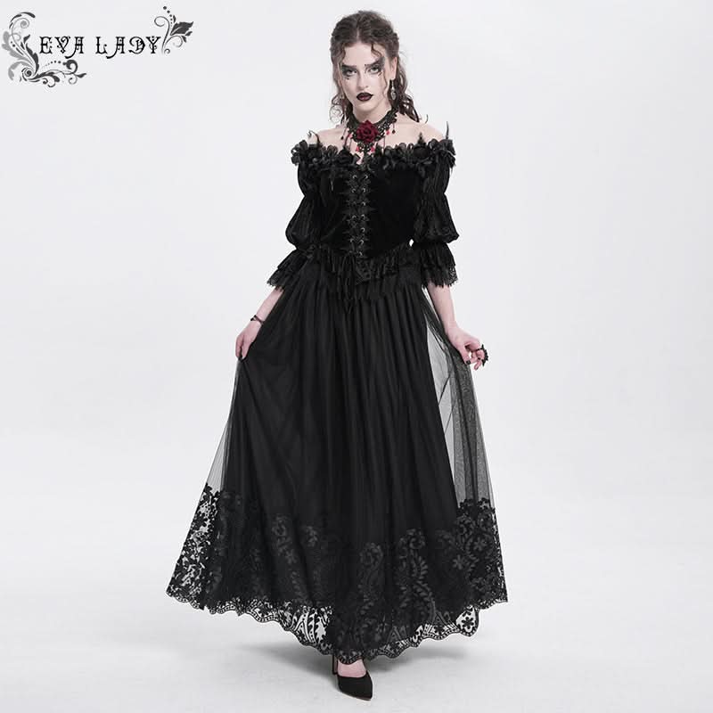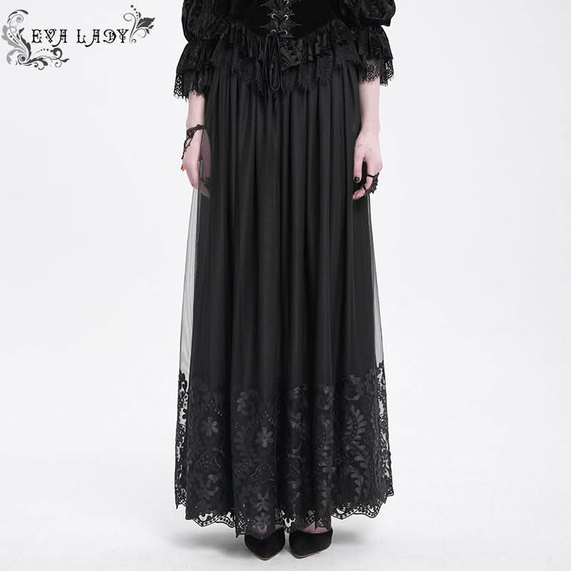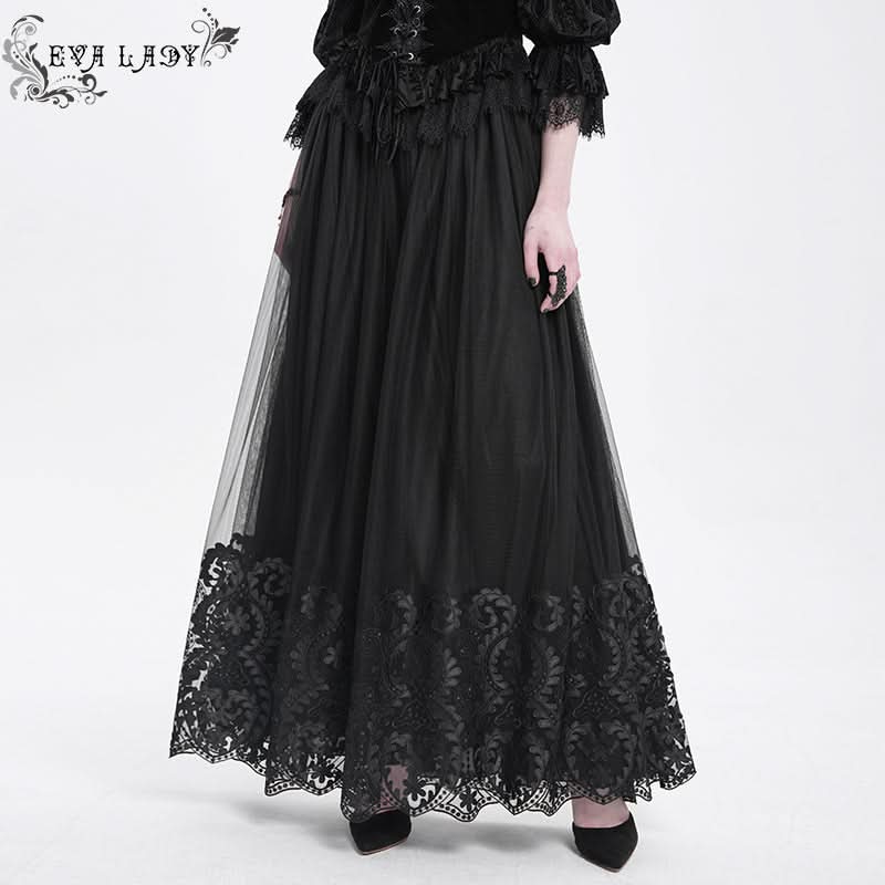 The Nocturne Bloom Skirt layers ornate floral embroidery across rich black fabric, crafting a silhouette that feels both elegant and enigmatic.
