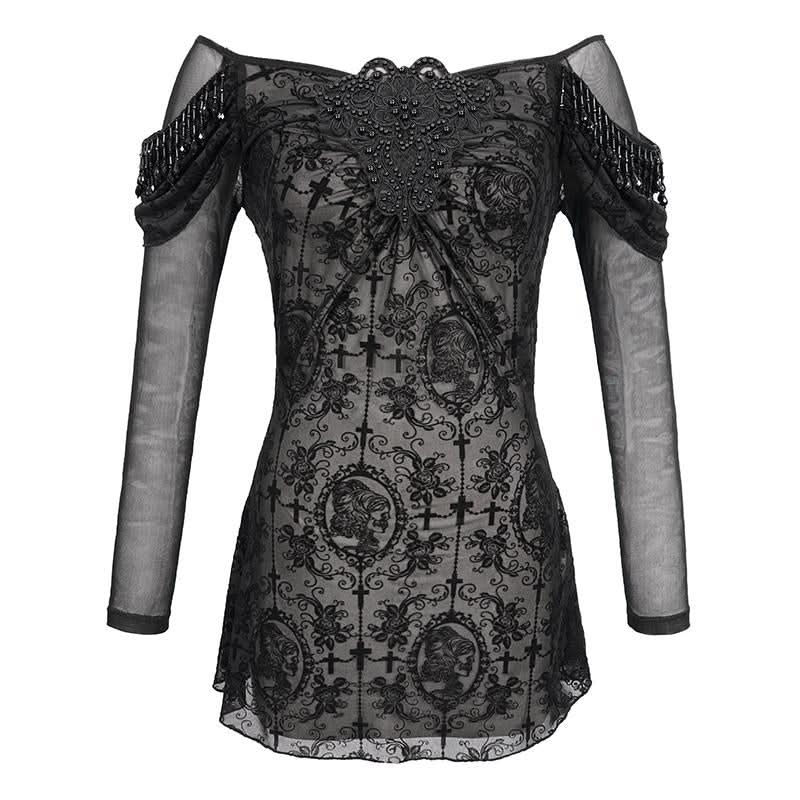 Shadow Song Gothic Mesh Top With Boat Neckline